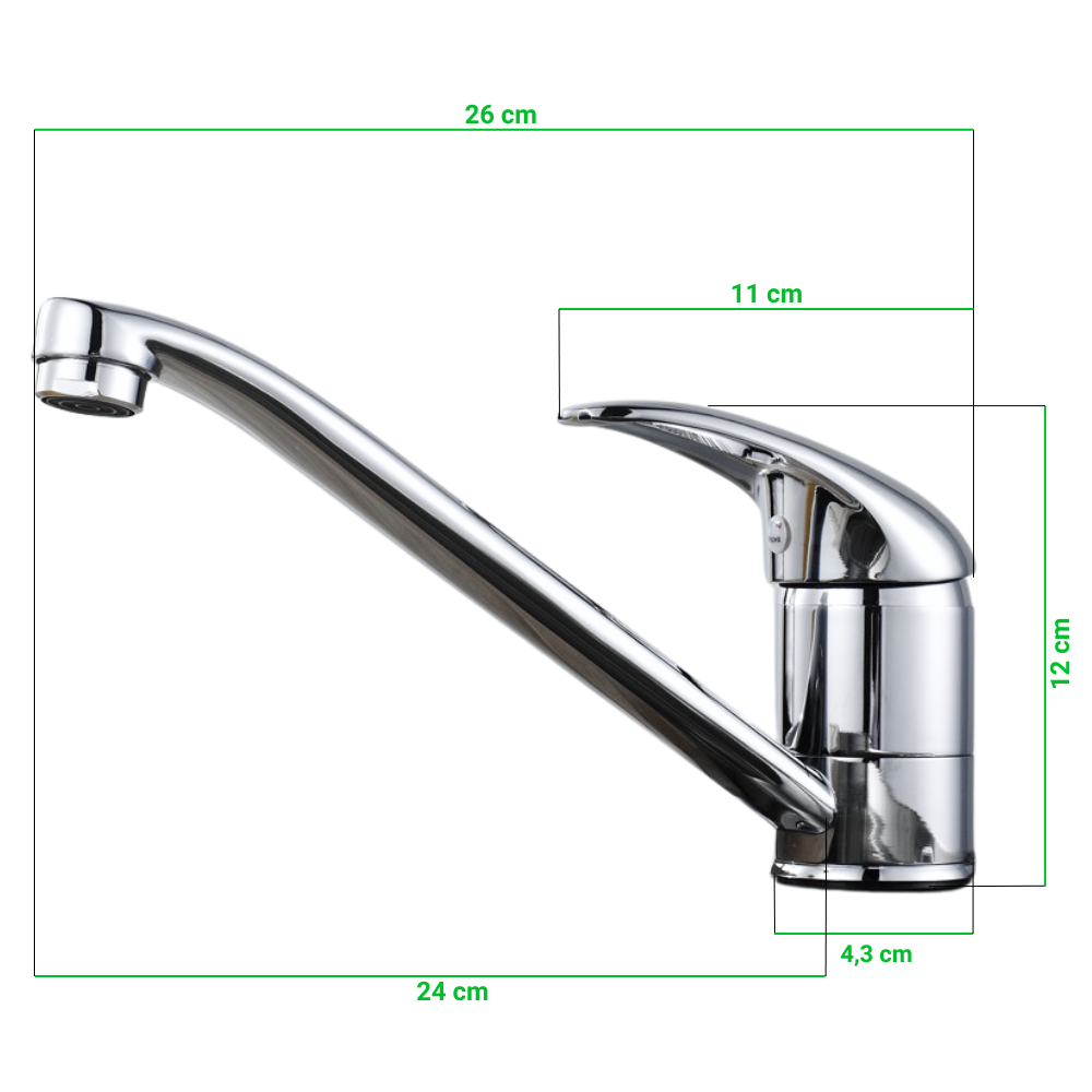 Nowoczesna bateria kuchenna. Bateria ta posiada wymienny perlator, który fantastycznie napowietrza wodę. Pasuje do każdego otworu zlewozmywaka. Kran wyposażony jest także w głowicę ceramiczną, która zapewni ciche i sprawne korzystanie z baterii. W naszym sklepie dostępne są inne baterie kuchenne, możesz znaleźć również każdy kran łazienkowy, czy kran do umywalki. Baterie umywalkowe i krany kuchenne dostępne są w różnych kształtach i kolorach. Zapraszamy do przejrzenia pełnej oferty.