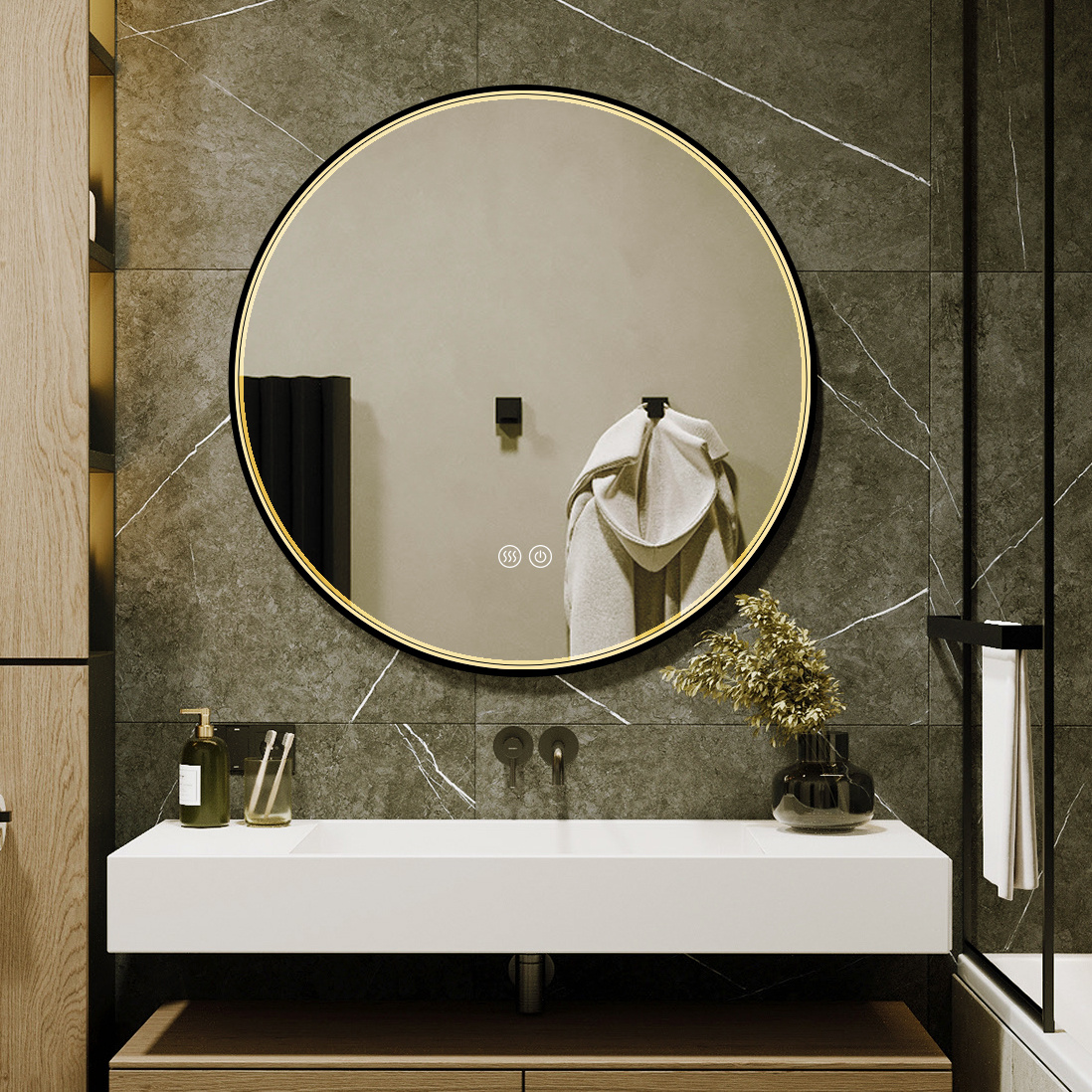 ✅ Zintegrowane dwudotykowe bezstopniowe przyciemnianie - lustro ma wbudowaną funkcję regulacji intensywności oświetlenia, którą obsługuje się za pomocą dotyku. Dwudotykowa obsługa pozwala na kontrolę światła poprzez dwukrotne dotknięcie panelu. Bezstopniowe przyciemnianie pozwala płynnie, bez skoków, dostosować jasność światła do swoich preferencji – od pełnej mocy po delikatne, przyciemnione oświetlenie