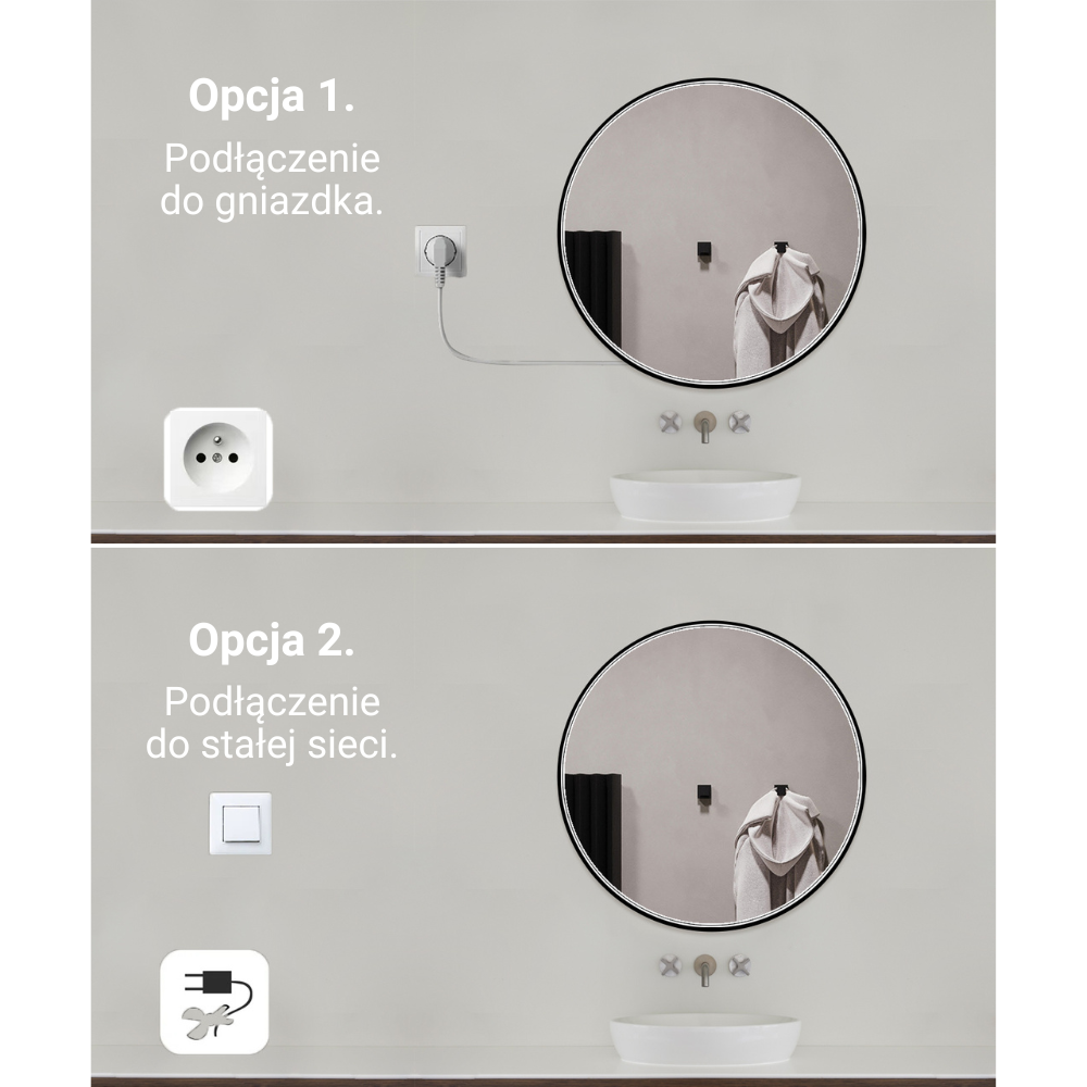 ✅ Lustro bez włącznika do zastosowania włącznika zewnętrznego np. ściennego lub do podłączenia sieciowego
