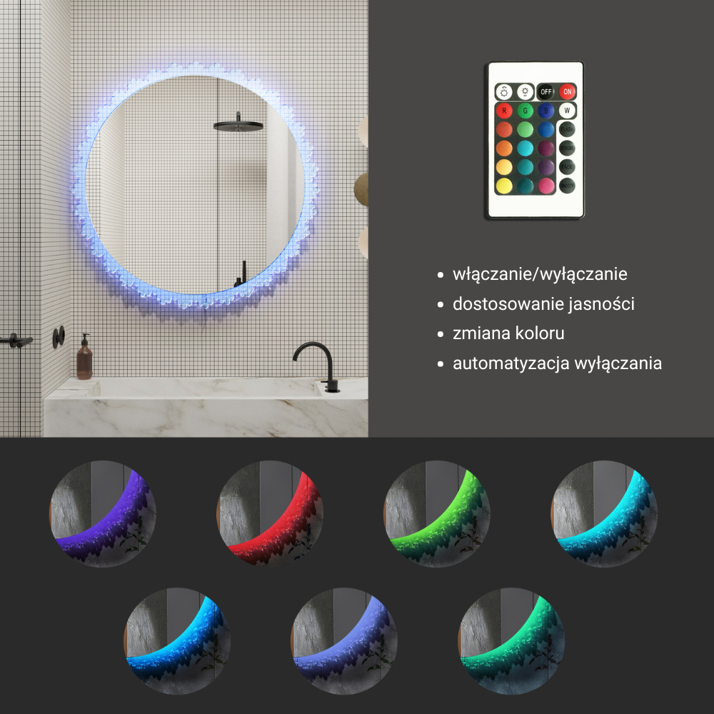 Lustro podświetlane LED 70 cm okrągłe H-2061 z ozdobną podświetlaną ramą RGB