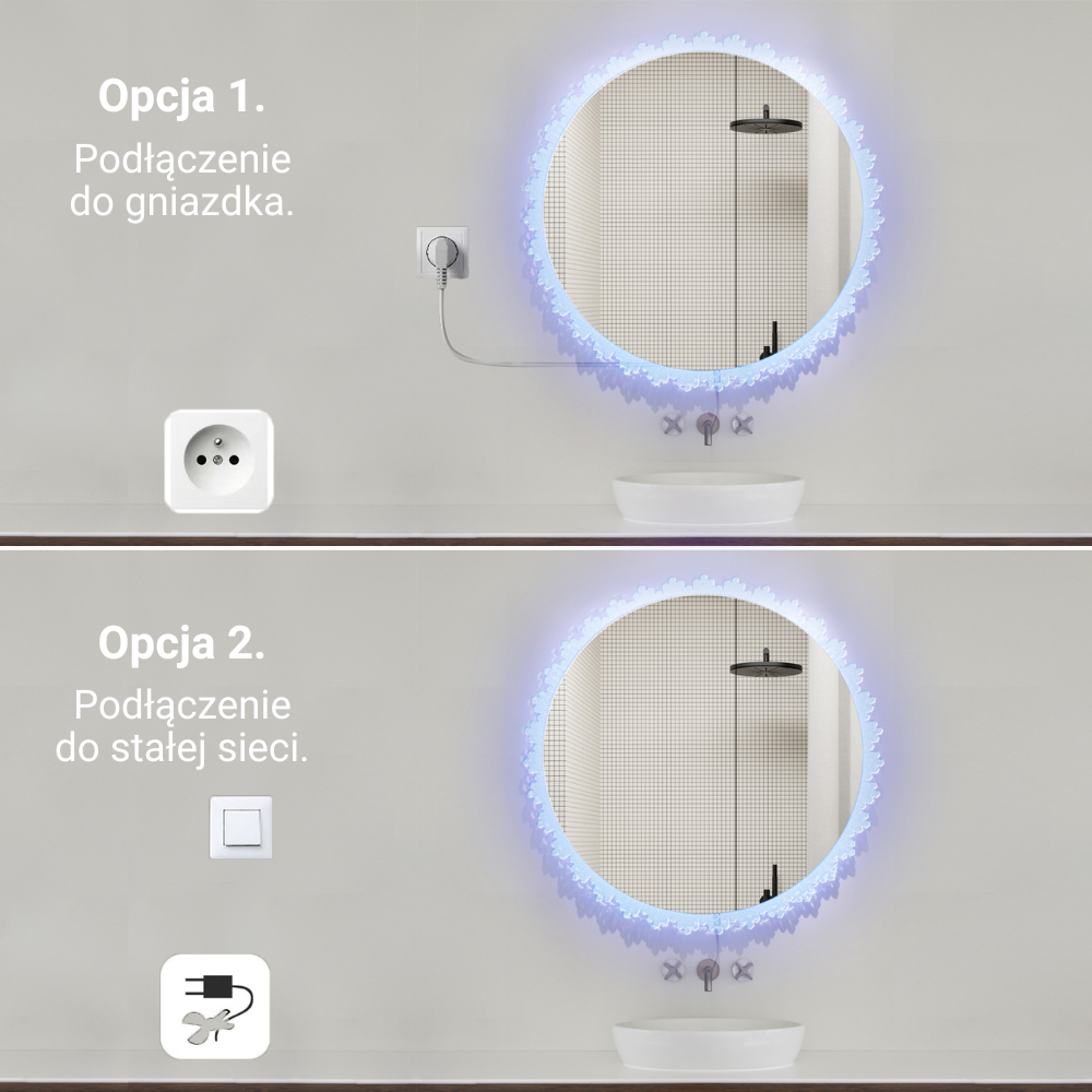 ✅ Lustro bez włącznika do zastosowania włącznika zewnętrznego np. ściennego lub do podłączenia sieciowego
