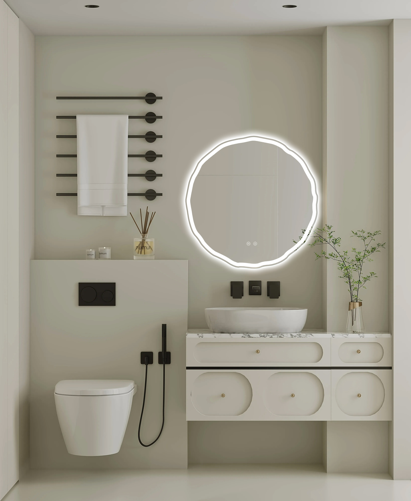 ✅ Nasze lustro z funkcją dotykowego wyboru barw to idealne rozwiązanie dla osób ceniących sobie komfort i elastyczność. Dzięki prostemu panelowi dotykowemu możesz w każdej chwili dostosować oświetlenie do swoich potrzeb – wybieraj pomiędzy chłodną bielą (6000K), ciepłym światłem (3000K) lub neutralnym blaskiem (4500K). Niezależnie od tego, czy przygotowujesz się na ważne wyjście, czy relaksujesz się wieczorem, zawsze znajdziesz idealne oświetlenie. Zmieniaj barwę światła, kiedy chcesz i dopasuj atmosferę do swojego nastroju!