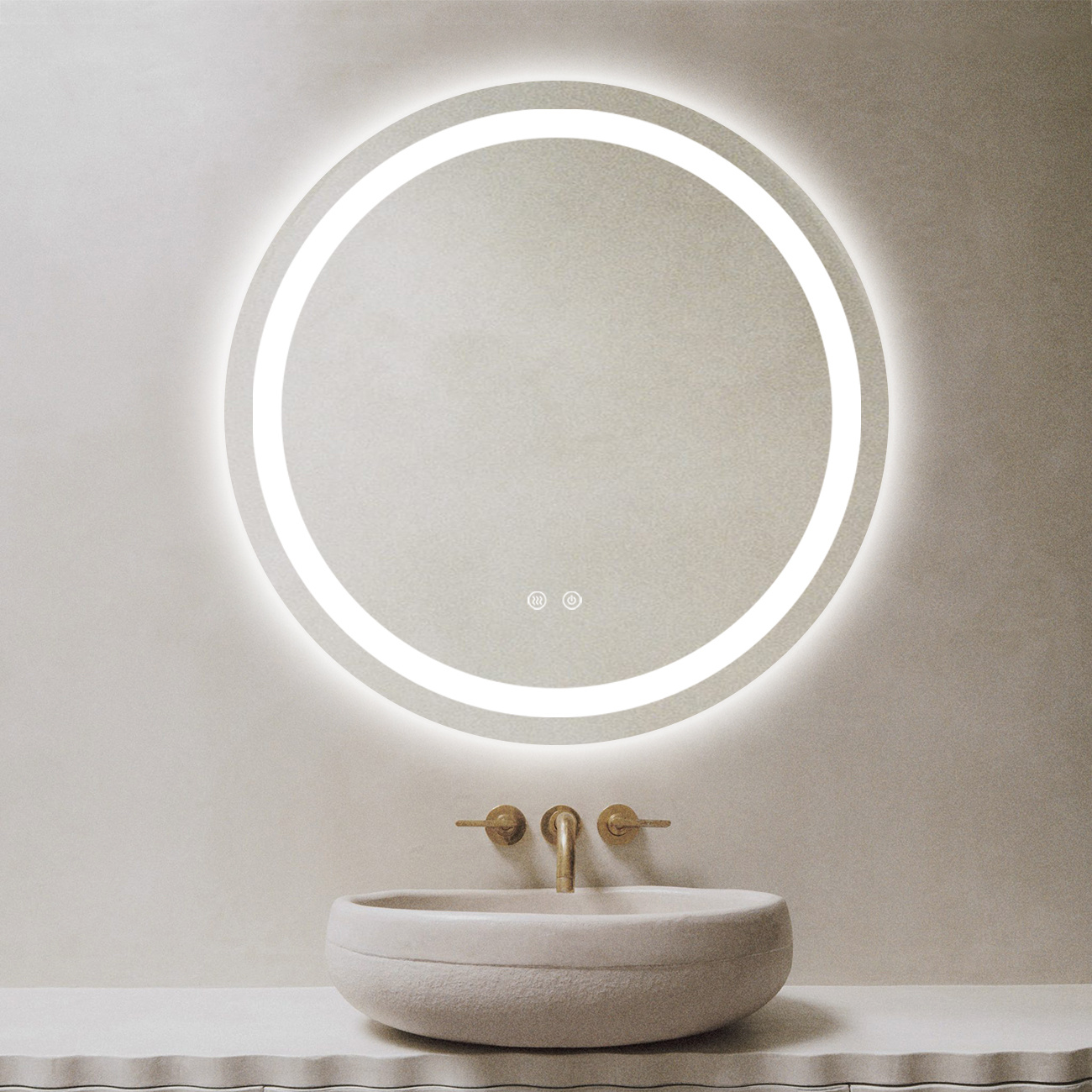 - Nowoczesne ścienne lustro z podświetleniem LED ledowym designerskie z podgrzewaniem ANTI-FOG, 3 barwy światła. Zastosowanie: łazienkowe, do salonu, do garderoby, do toaletki.
