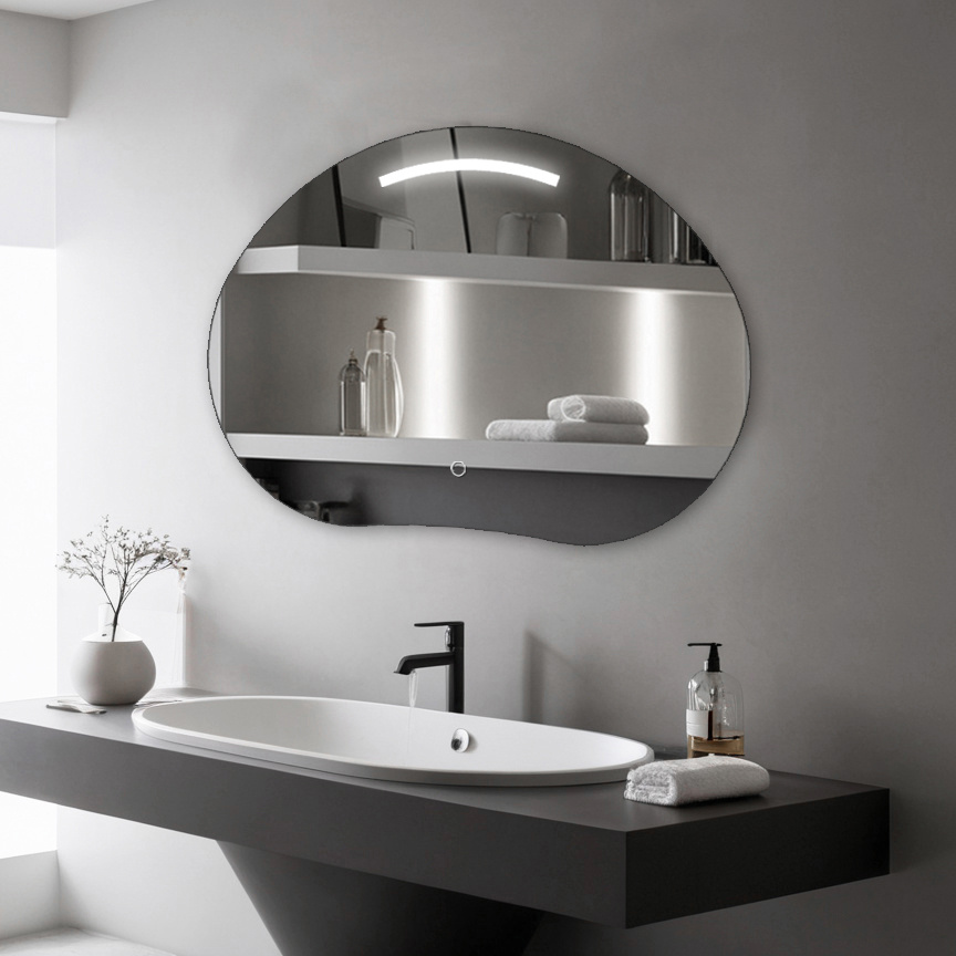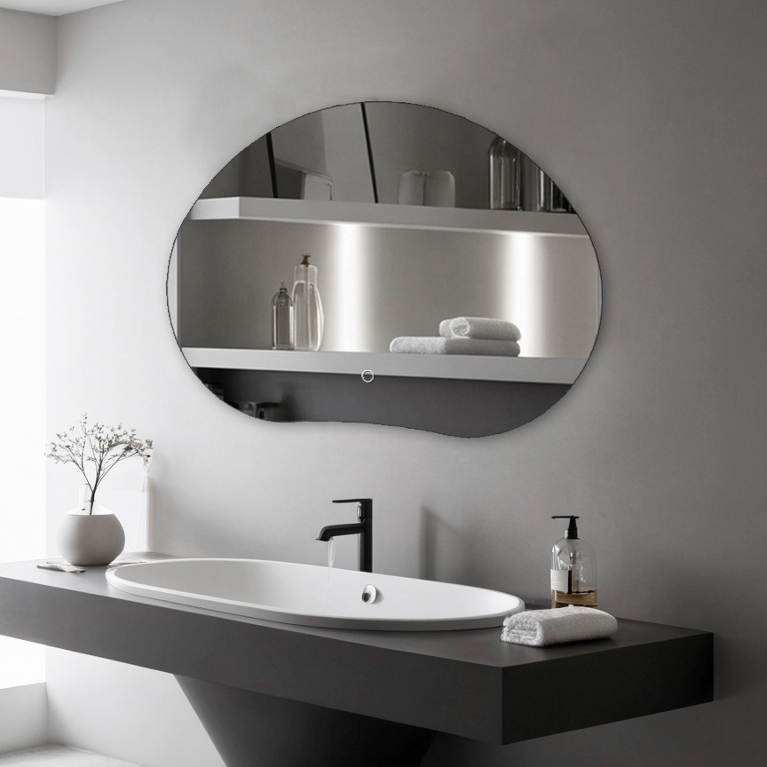 Lustro podświetlane LED asymetryczne dekoracyjne 70x50 cm nieregularne H-3071