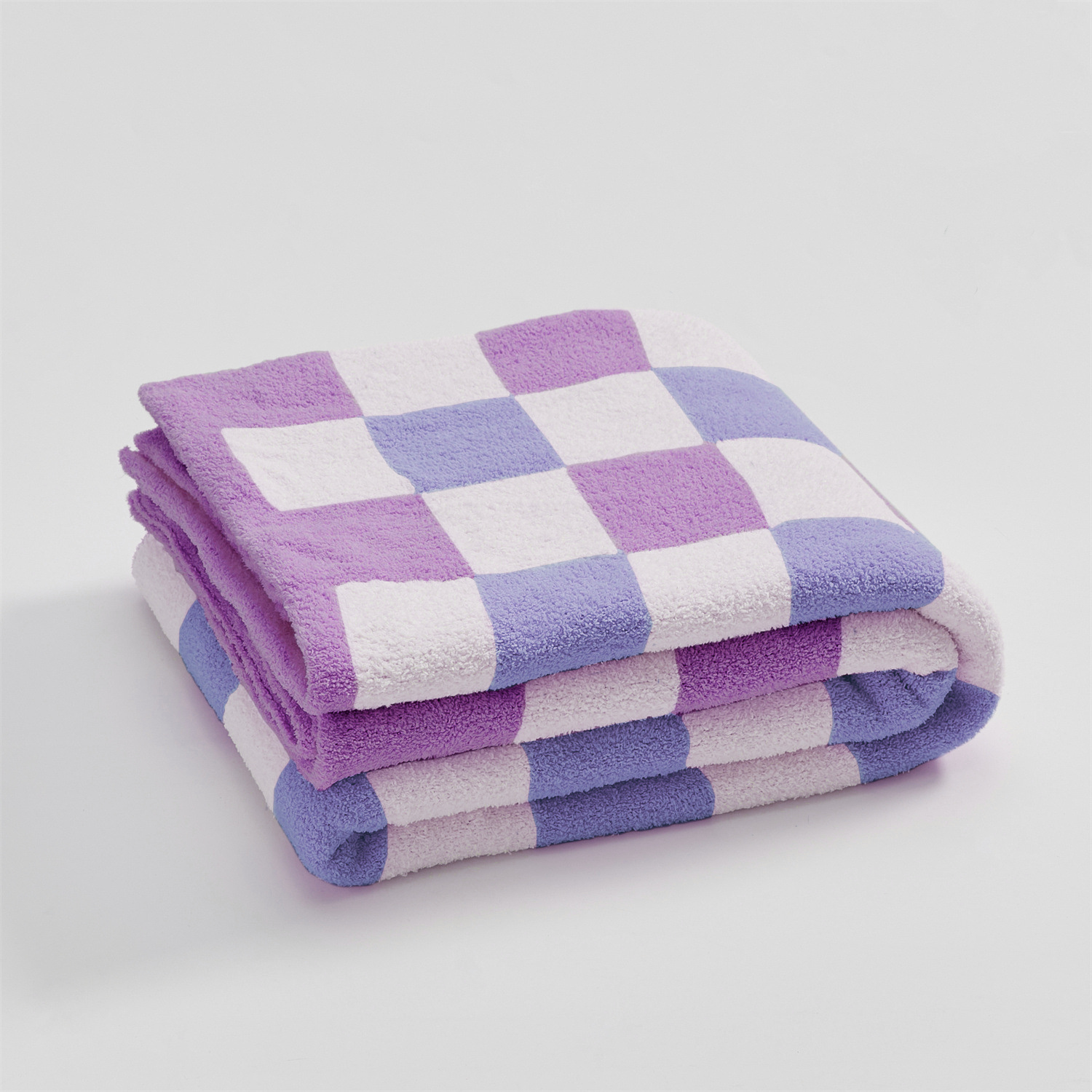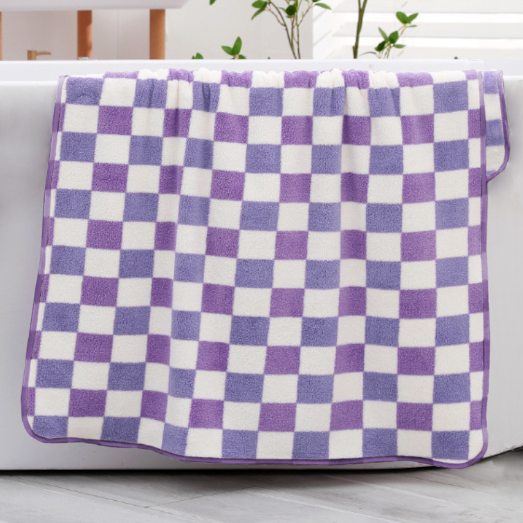 Ręcznik bawełniany łazienkowy w kratę 70x140 cm fioletowy