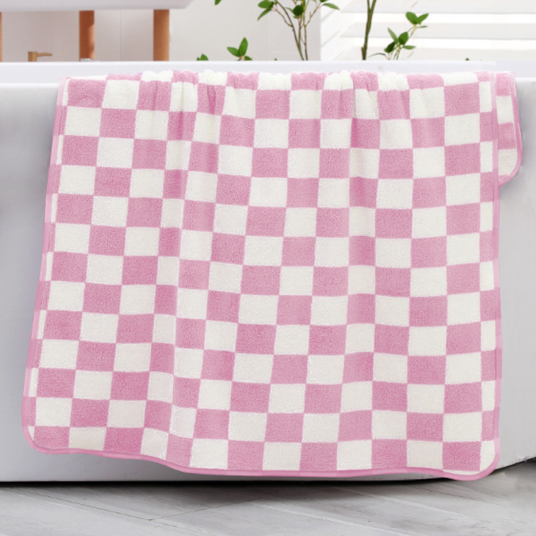 Ręcznik bawełniany łazienkowy w kratę 70x140 cm różowy