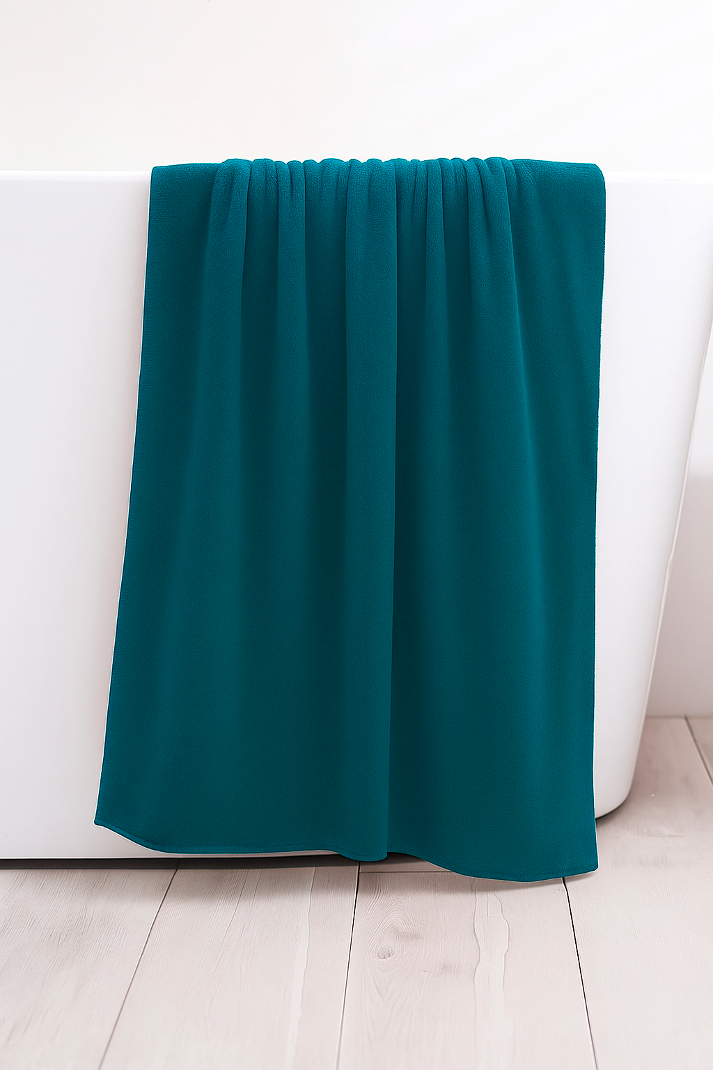 Mikrofibra składa się z ultracienkich włókien, które wchłaniają wodę między włókna, a nie do ich wnętrza, dzięki czemu wilgoć błyskawicznie odparowuje. W efekcie ręcznik jest suchy nawet po kilkunastu minutach od użycia.