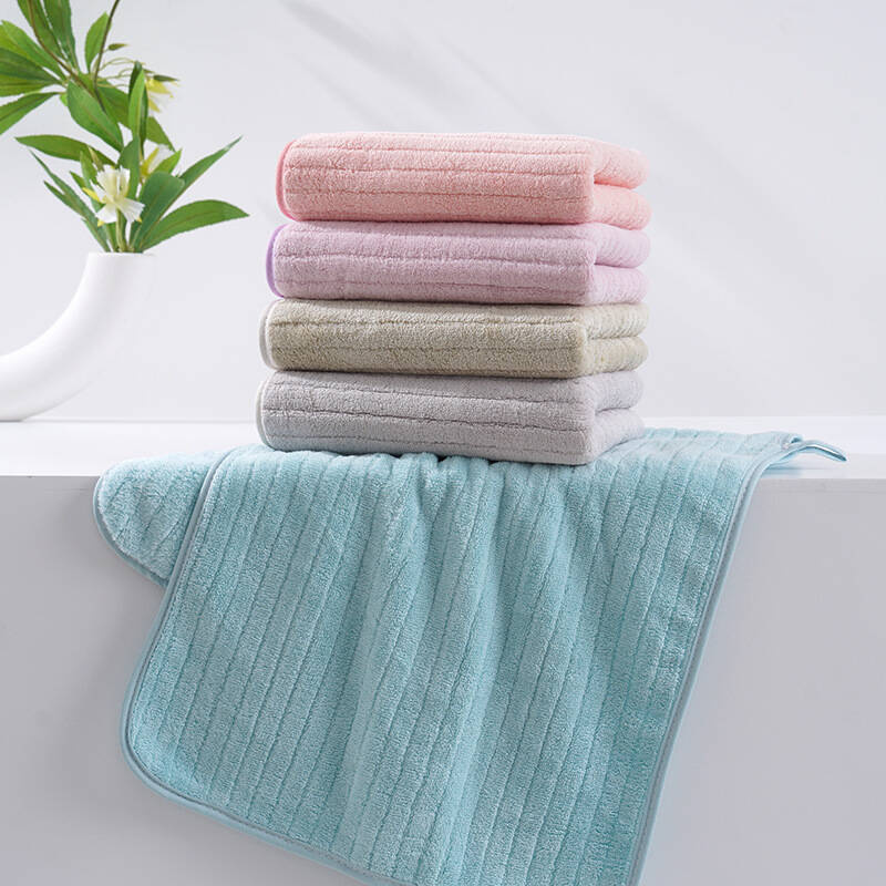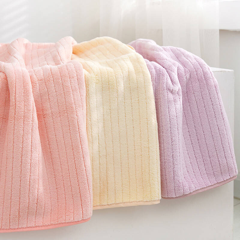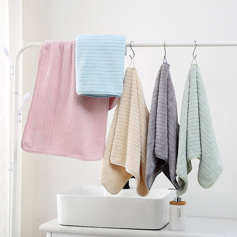 Ręcznik kąpielowy różowy w paski z mikrofibry 50x100 szybkoschnący