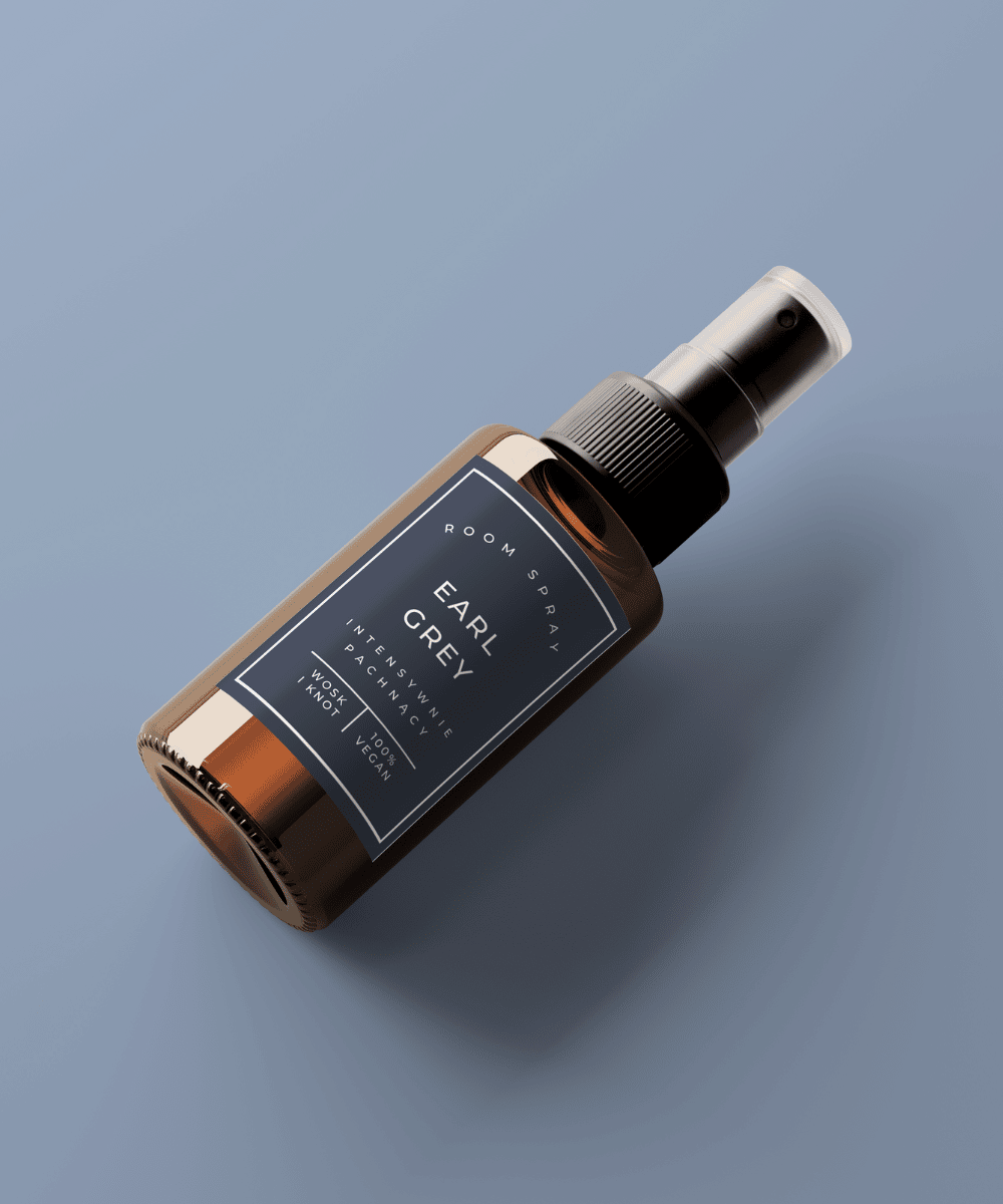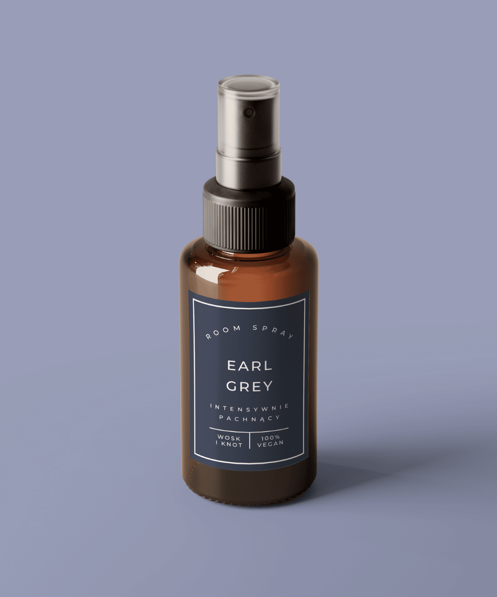 Room Spray Earl Grey cudowny zapach czarnej herbaty z bergamotką i skórą pomarańczy, wzbogacony delikatną nutą jaśminu i trawy cytrynowej.