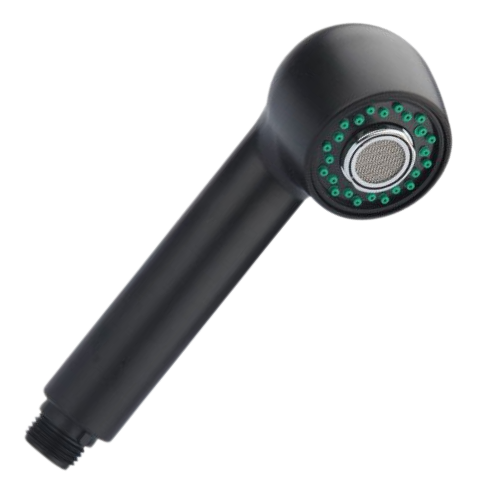 - Słuchawka, rączka do baterii kuchennej z wyciąganą wylewką, 2 tryby strumienia regulowane silikonowym przyciskiem