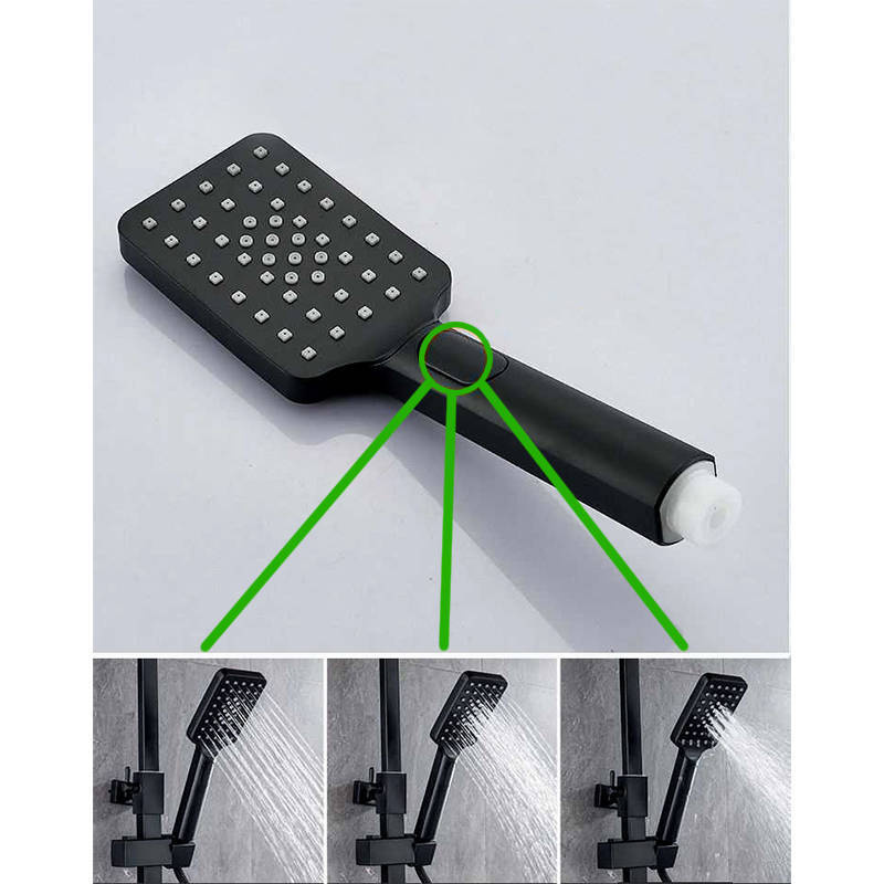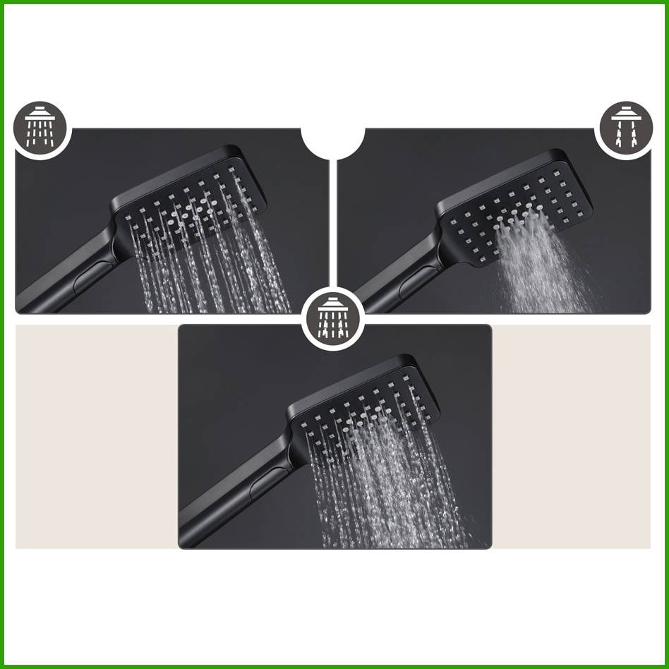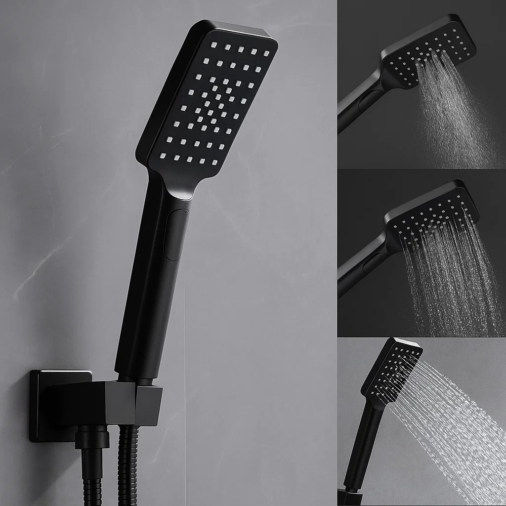 Słuchawka prysznicowa 3-funkcyjna – czarny mat, prostokątna, system antykamień