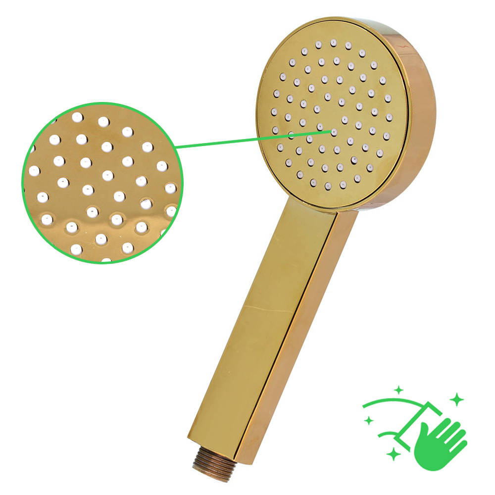 Przedstawiona słuchawka wykonana jest z twardego tworzywa typu PVC, bardzo dobrze rozprowadza strumień wody. Słuchawka jest w oryginalnym złotym kolorze co sprawi, że świetnie skomponuje się ze złotą armaturą w Twojej łazience.