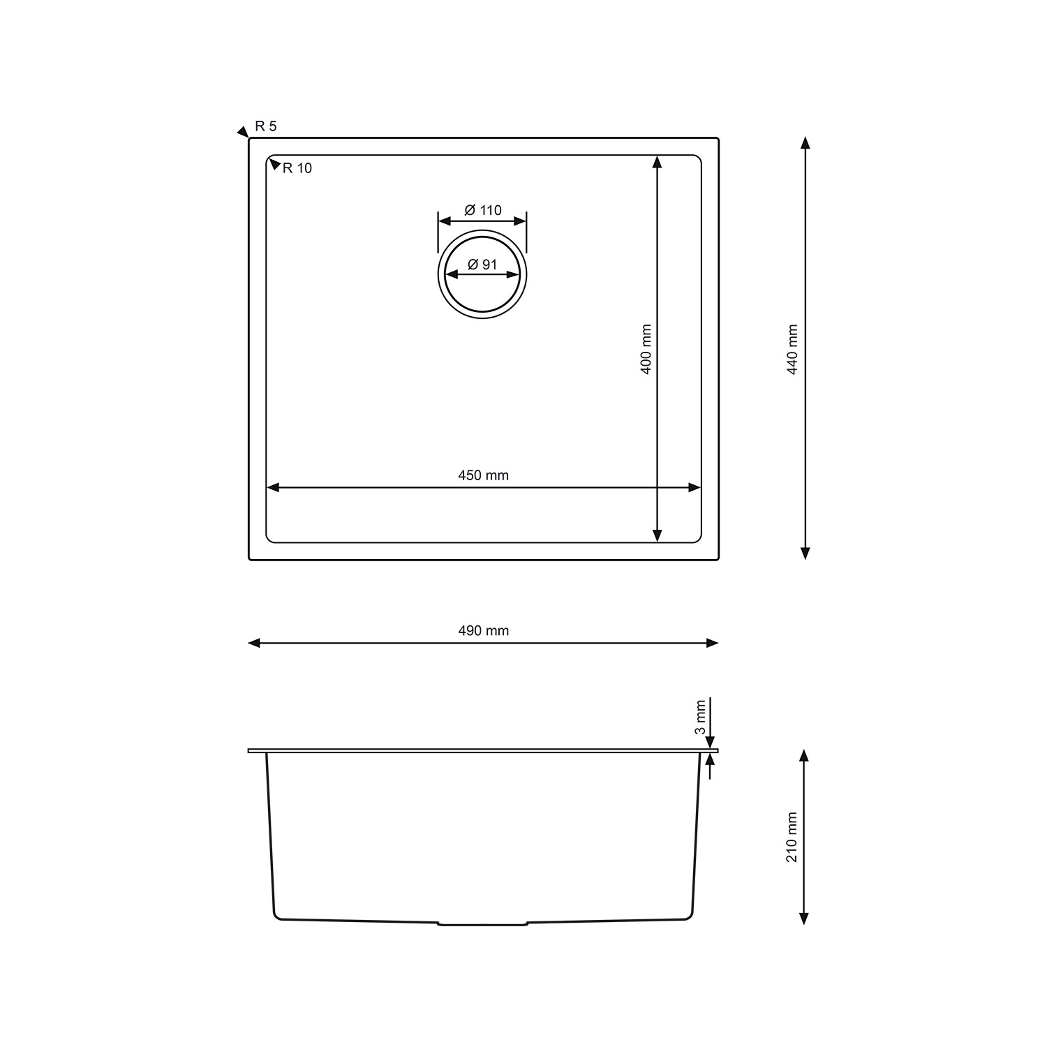• ścianki zlewozmywaka o grubości 3 mm, odporne na uszkodzenia