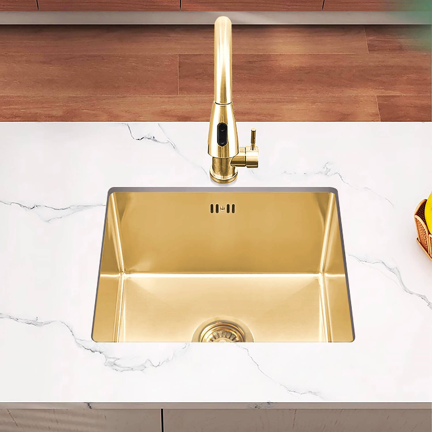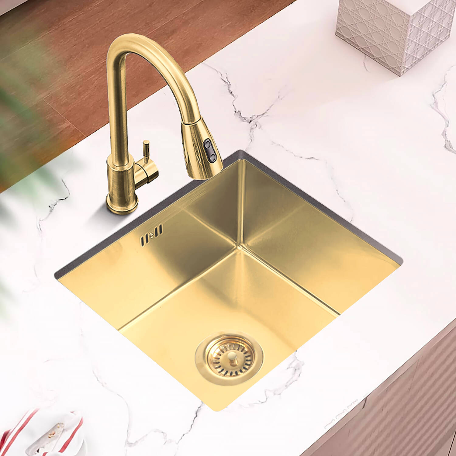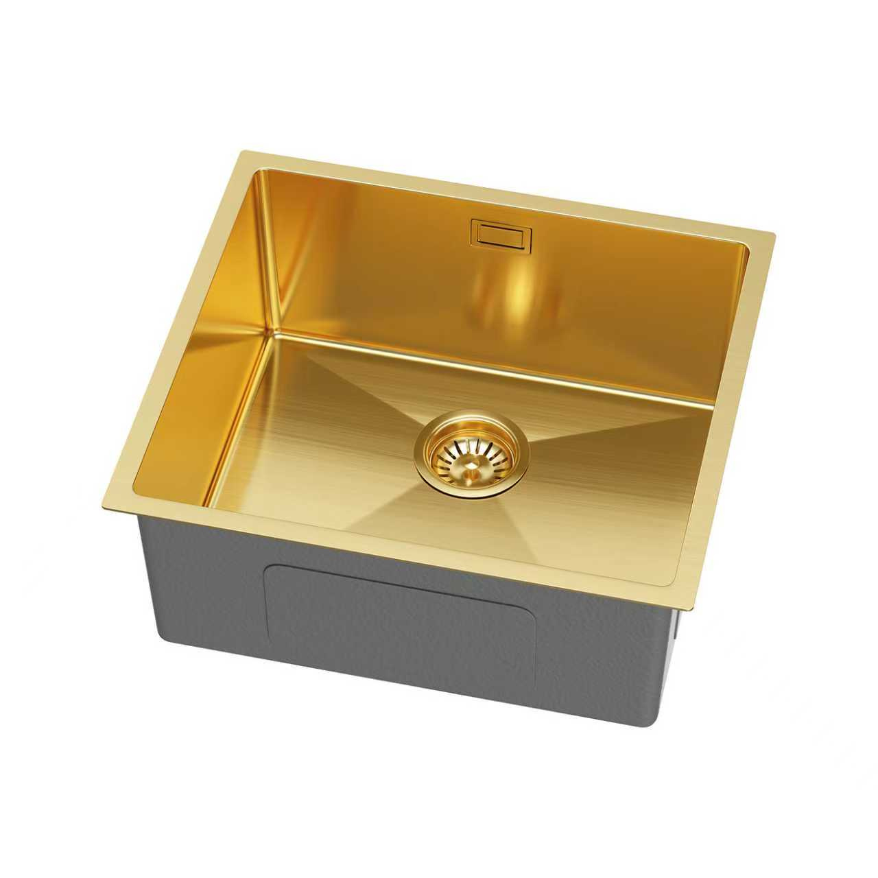 Zlewozmywak stalowy 49x44 złoty + syfon GRATIS podblatowy, podwieszany