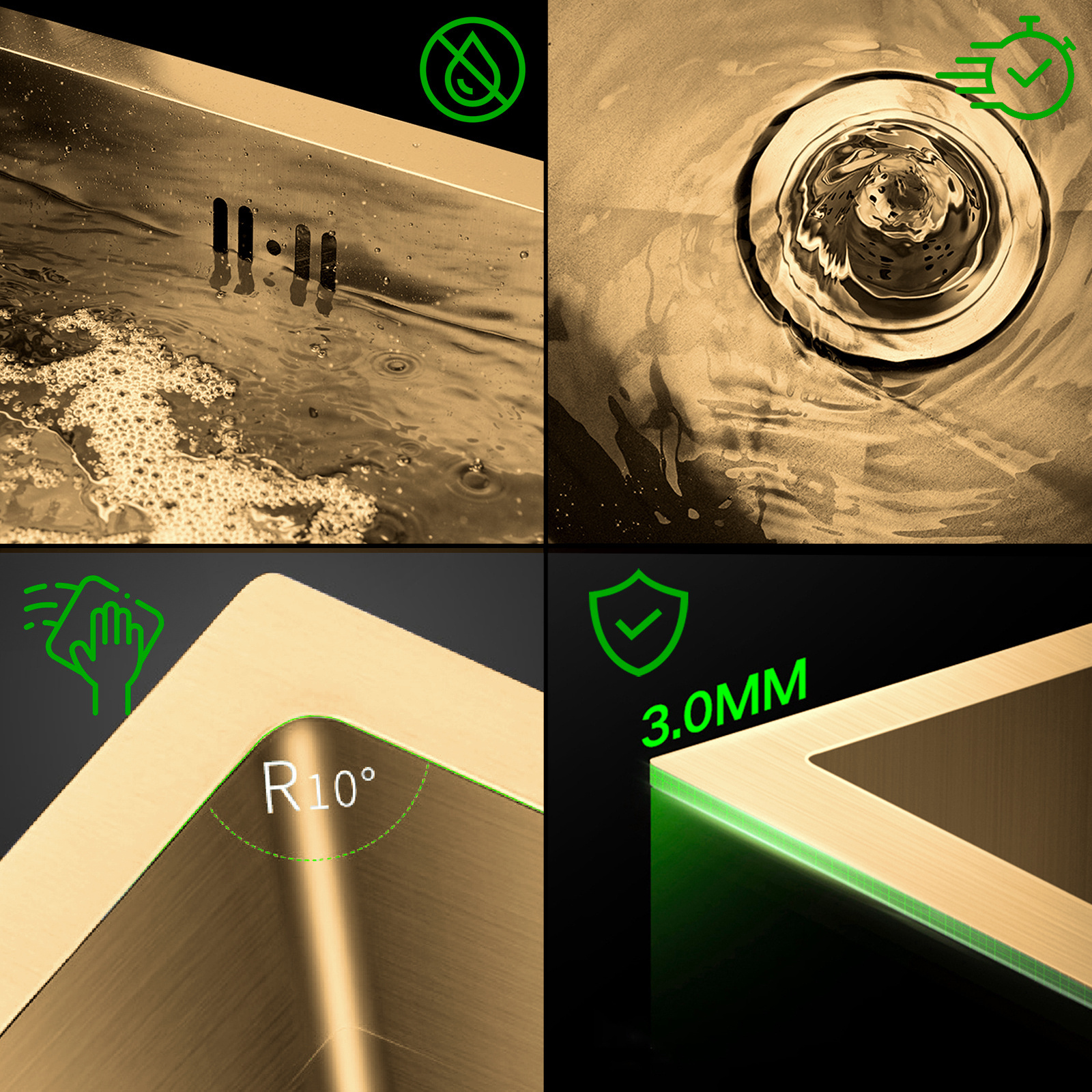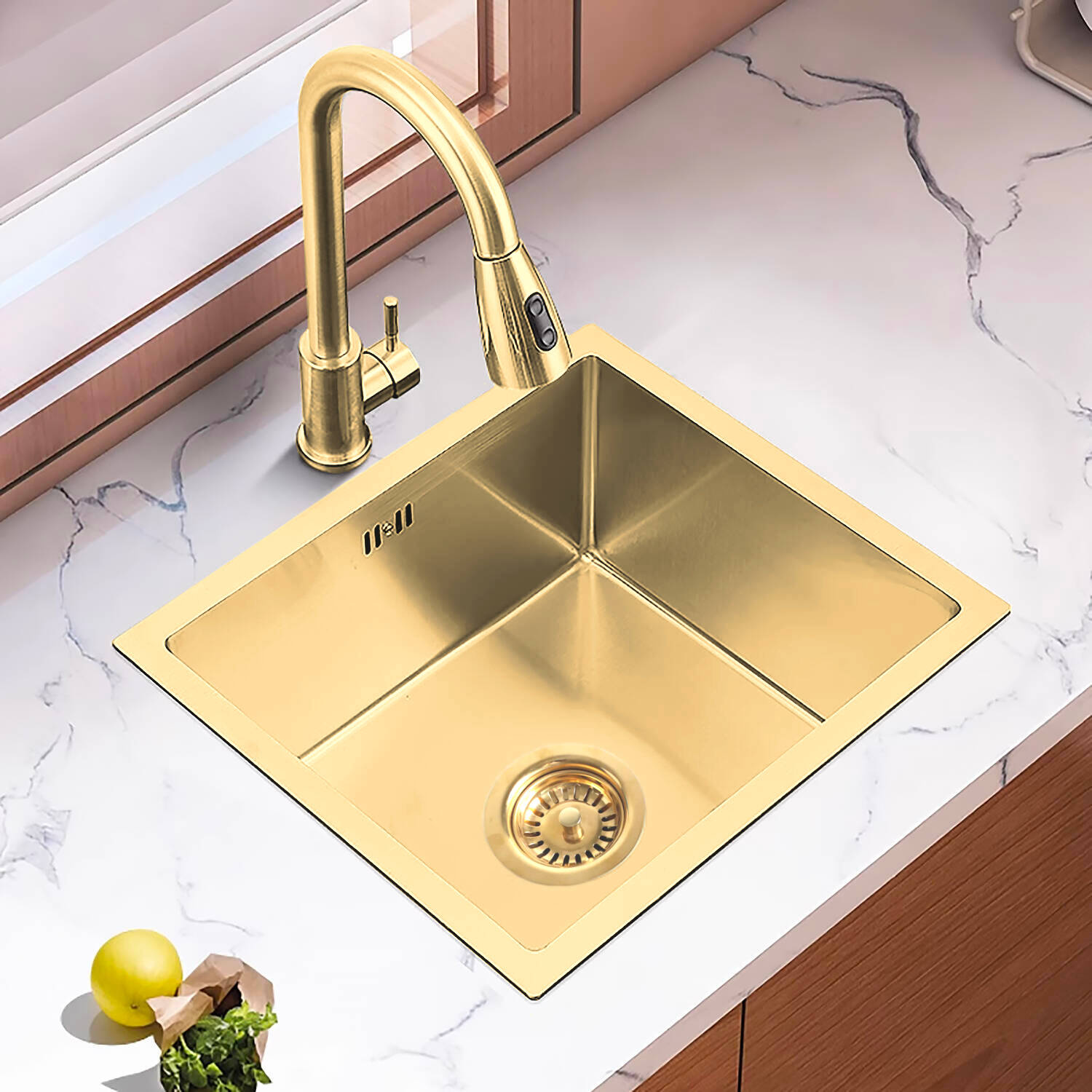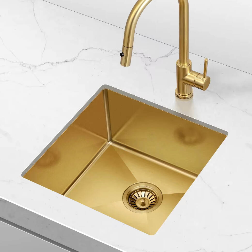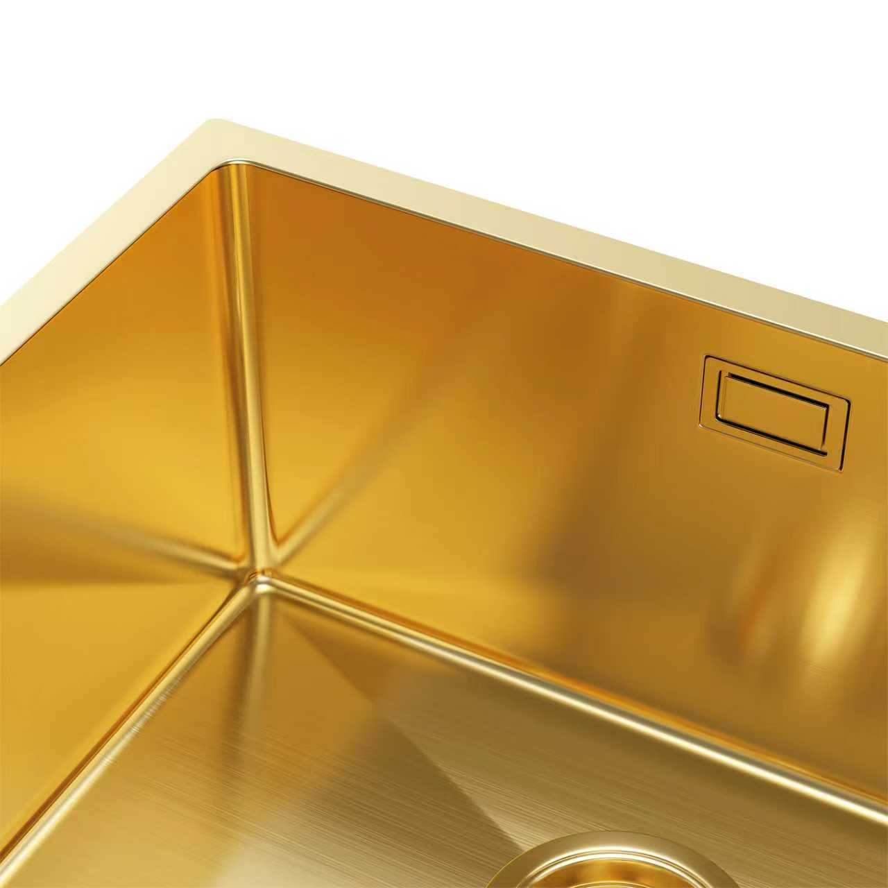• Zlew kuchenny ze stali szczotkowanej pozłacanej, wpuszczany lub nablatowy, jednokomorowy 4944G