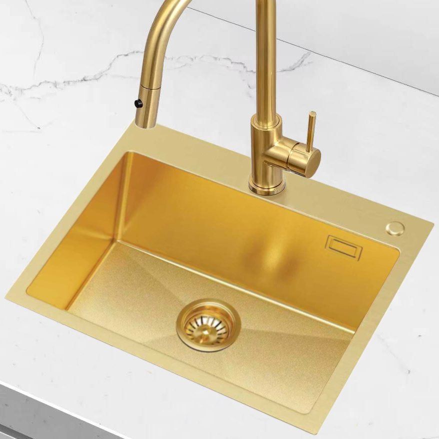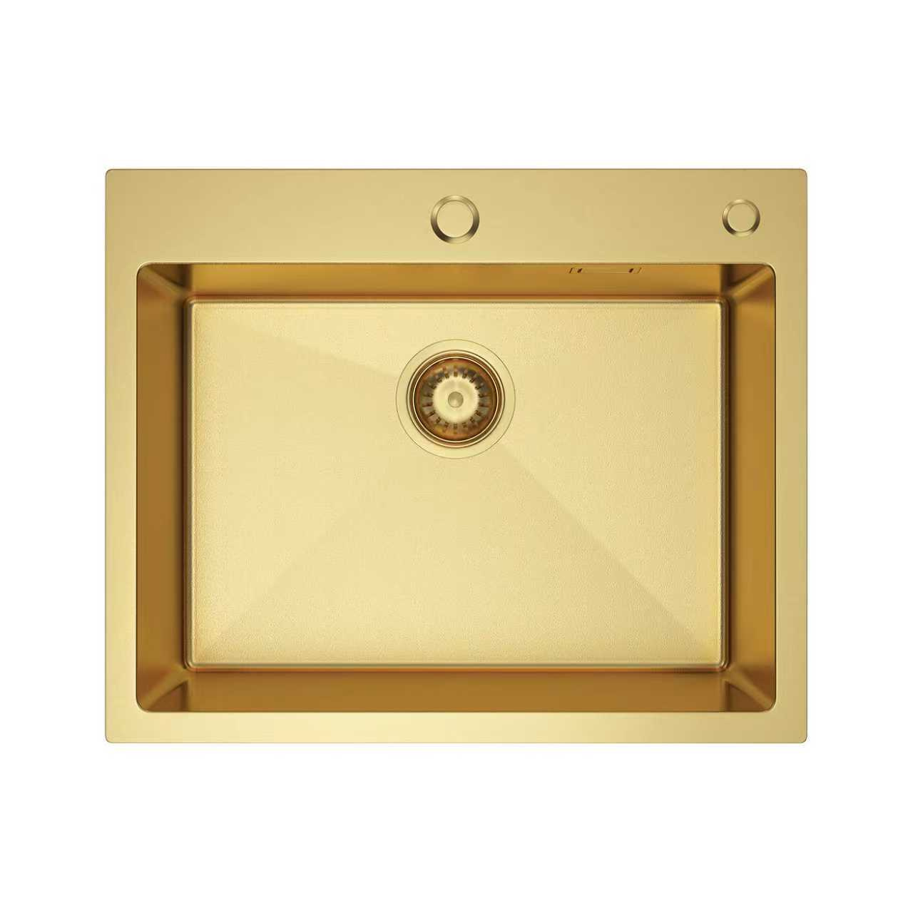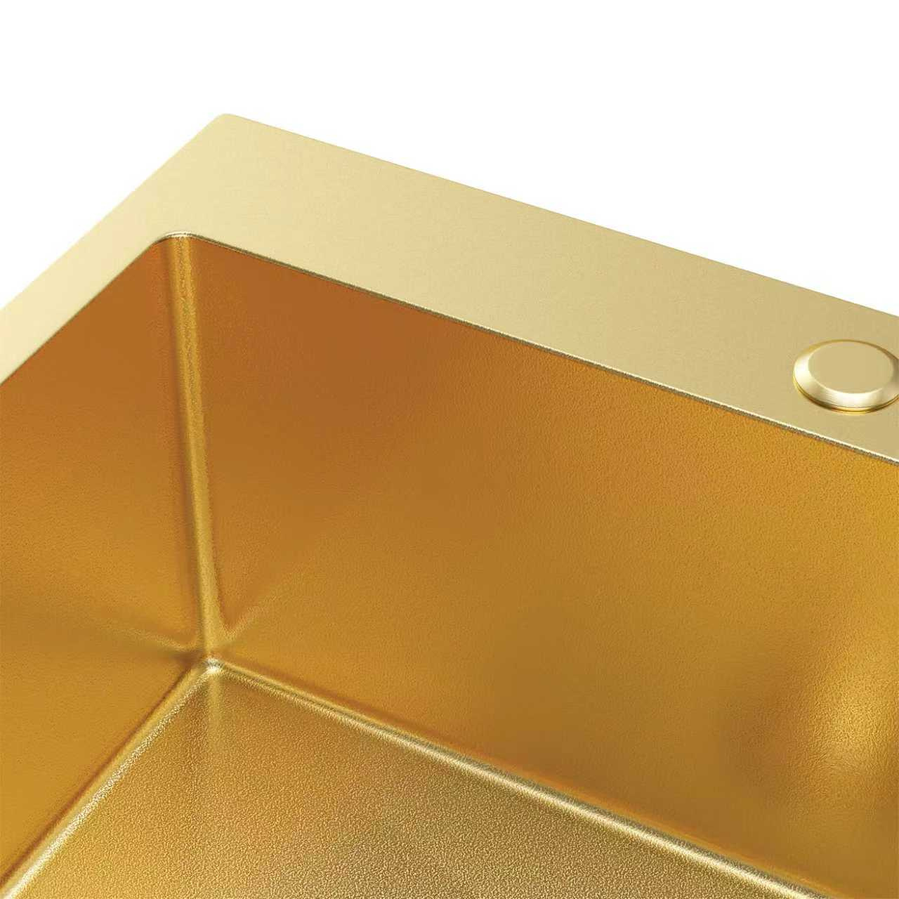 • Zlew kuchenny ze stali o chropowatej powierzchni pozłacanej, wpuszczany, nablatowy, jednokomorowy 5545