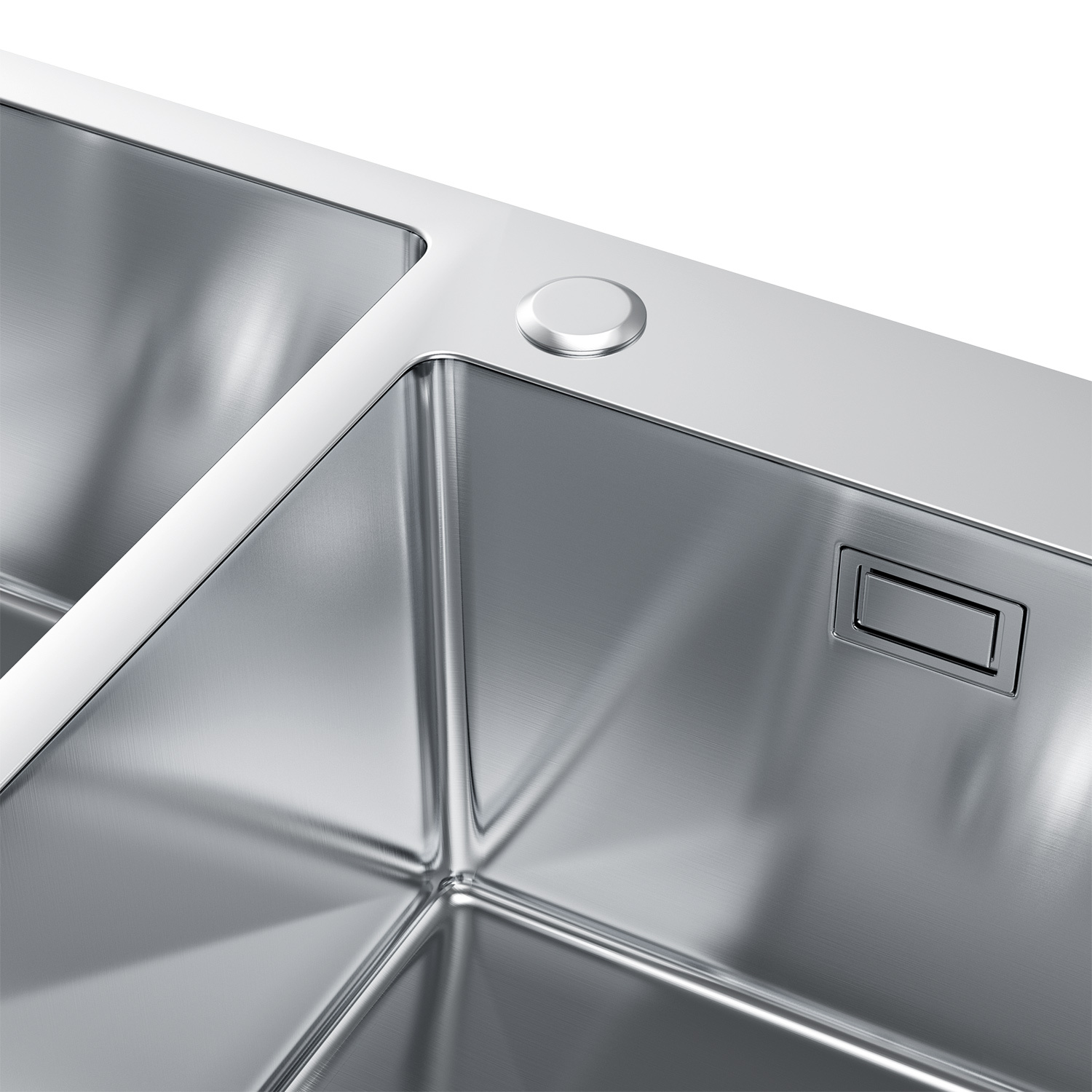 Do stworzenia zlewozmywaka wykorzystano stal szlachetną najwyższej jakości, który łączy w sobie niezawodność i trwałość. Produkt wyróżnia się doskonałym balansem prostoty oraz geometrycznej elegancji. Połączenie klasycznej formy z innowacyjnym materiałem nie tylko podkreśla uniwersalność zlewu, ale także sprawia, że doskonale komponuje się zarówno w tradycyjnych kuchniach, jak i w bardziej nowoczesnych wnętrzach.