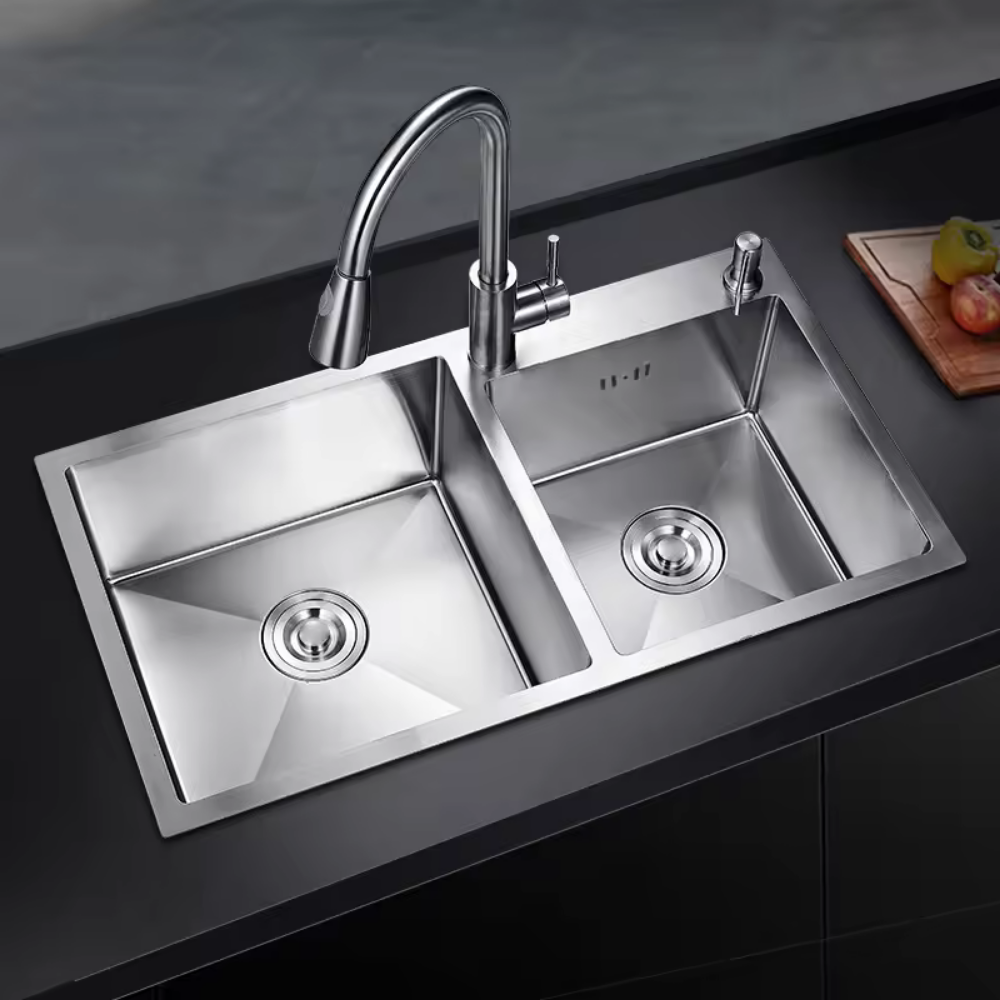 Zlewozmywak stalowy dwukomorowy 78x45 inox + syfon GRATIS