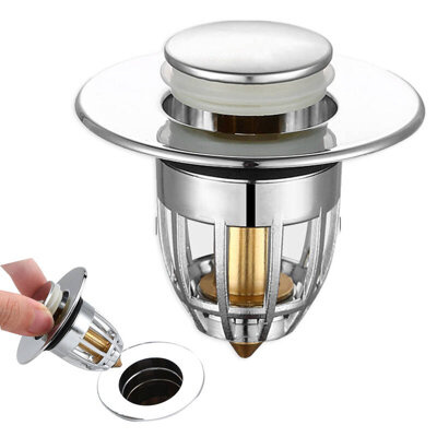 Syfon elastyczny + Korek umywalkowy KLIK-KLAK chromowany bez przelewu z sitkiem